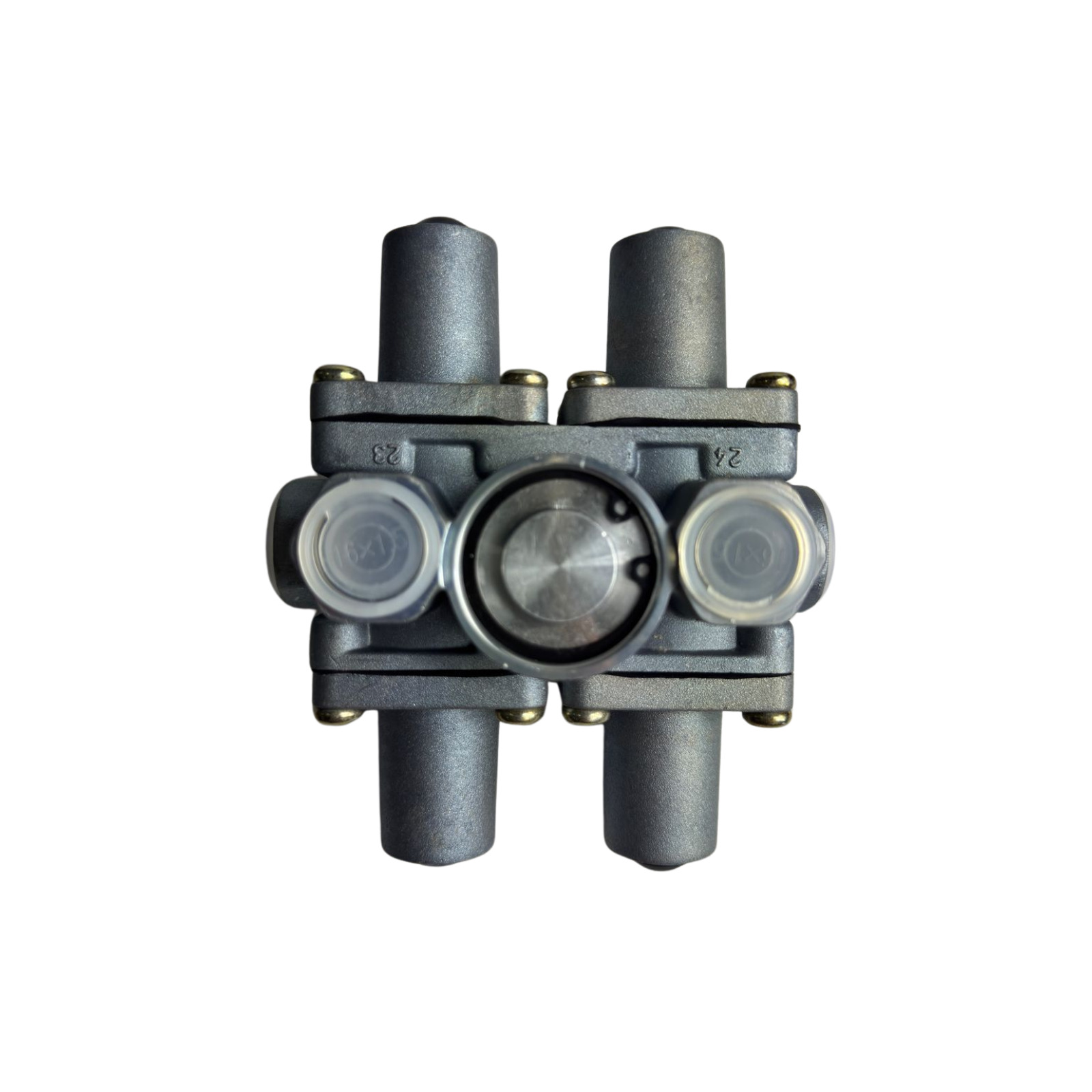 A válvula de proteção 4 circuitos é um componente essencial do sistema de freio pneumático, responsável por distribuir e proteger a pressão de ar entre os circuitos, garantindo segurança e funcionamento correto do sistema.